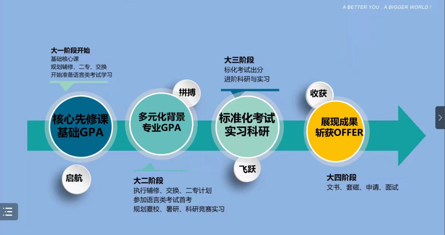 为助力bat365高水平大学建设和高质量人才培养,服务学生做好多元发展路径规划,10月26日晚,国际合作与交流处线上开展了2022级新生国际竞争力提升规划专题讲座。本场讲座以“走进南财 走向世界”为主题,旨在为大一新生提供国际化发展规划指导和留学经验交流分享。国际合作与交流处副处长(主持工作)杨智华、副处长马健及相关项目负责老师参加活动并为新生答疑解惑。讲座由国际合作与交流处朱珊珊老师主持。来自各学院的100多名学生参加讲座。