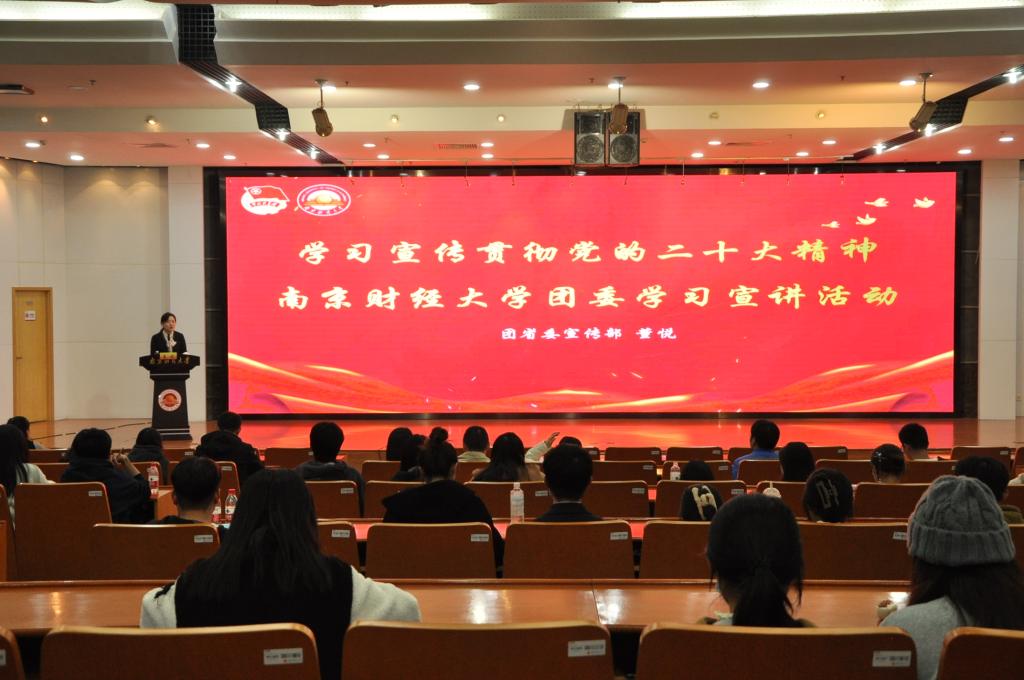 为深入学习宣传贯彻党的二十大精神,11月20日晚,校团委在仙林校区图书馆一楼报告厅召开学习贯彻党的二十大精神宣讲会。共青团江苏省委宣传部部长董悦作宣讲报告,并与bat365团干部及团员青年代表互动交流。宣讲会由校团委书记徐刚主持。