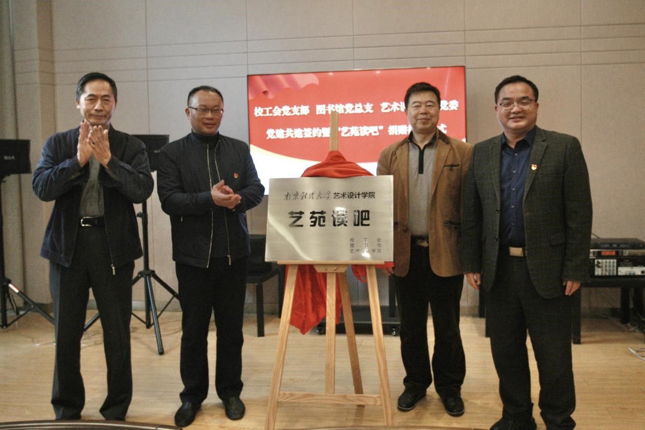 为进一步加强基层党组织建设,努力构建基层党建工作新格局,11月24日下午,校工会、图书馆、艺术设计学院在仙林校区美术馆会议室举行党建共建签约暨“艺苑读吧”揭牌仪式。校工会主席冯玉川、图书馆党总支书记陆斌、图书馆馆长张春法、艺术设计学院党委书记刘浩、校工会副主席吴丹、图书馆副馆长陈夏、艺术设计学院副院长许蚌参加签约暨揭牌仪式。图书馆、艺术设计学院部分师生参加活动。仪式由艺术设计学院党委副书记马健主持。