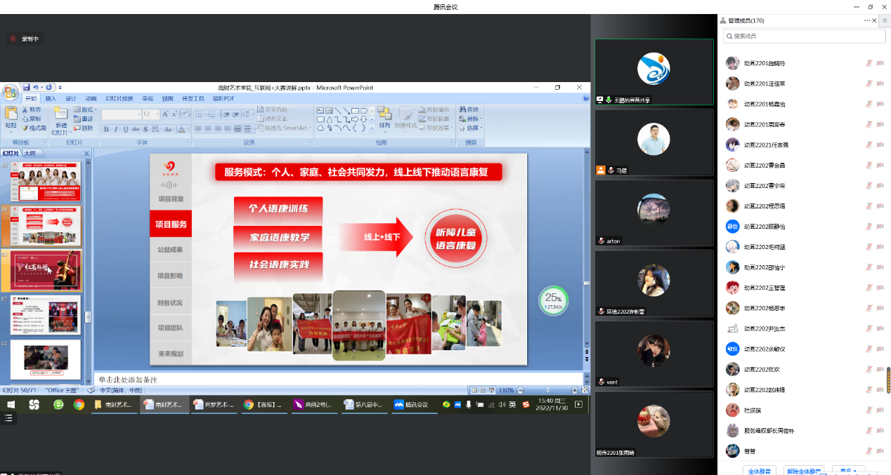 为做好学校第九届“互联网+”大学生创新创业大赛暨省赛选拔赛备赛准备工作,加强师生联动,11月30日下午,艺术设计学院邀请中国国际“互联网+”大学生创新创业大赛第四至八届全国总决赛评委王鹏为学院师生开展“互联网+”创新创业大赛专题线上讲座。学院师生近200人参加讲座。讲座由艺术设计学院副院长许蚌主持。