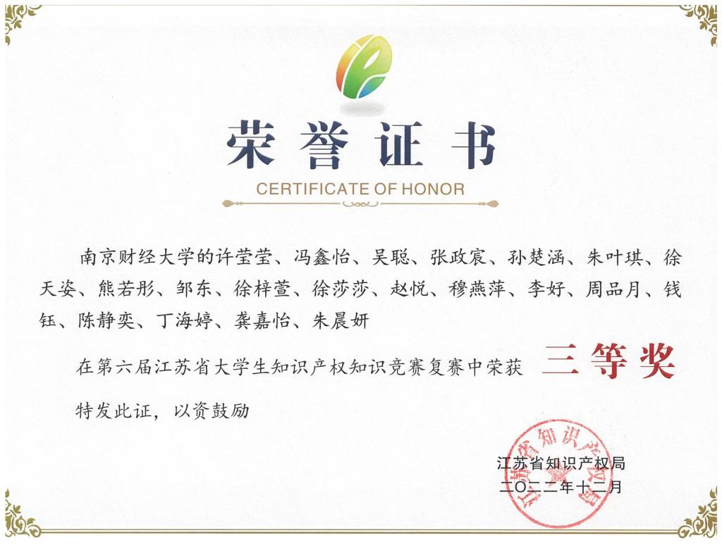 bat365学子获第六届江苏省大学生知识产权知识竞赛复赛三等奖