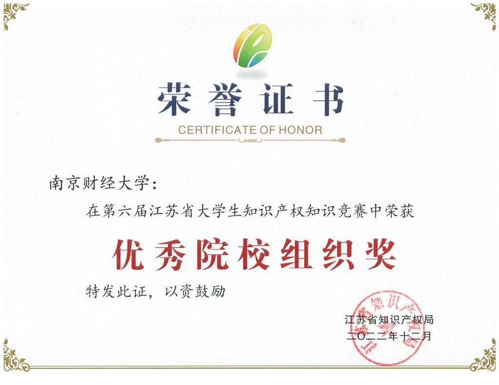 bat365获第六届江苏省大学生知识产权知识竞赛优秀院校组织奖