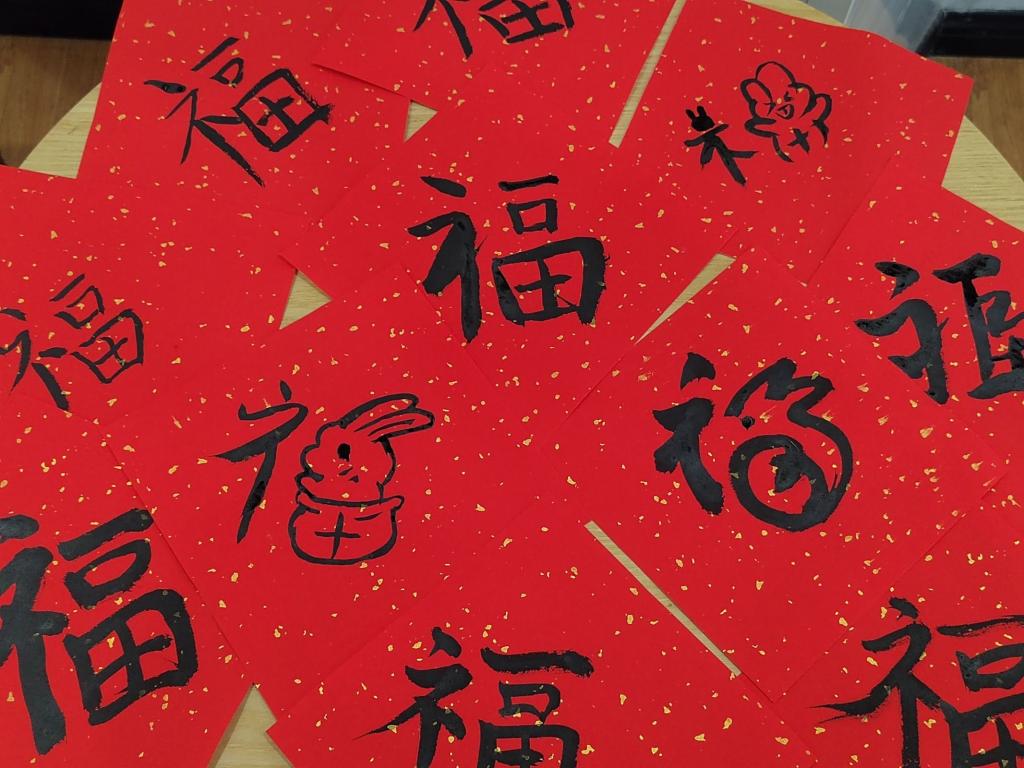 活动负责人曾位同学表示,“元旦节是新的一年的开始,我们通过书写‘福’字和对联的方式庆贺新年的到来,共同营造节日氛围,让同学们在笔墨书香里过了一个充满中华传统韵味的元旦佳节。”