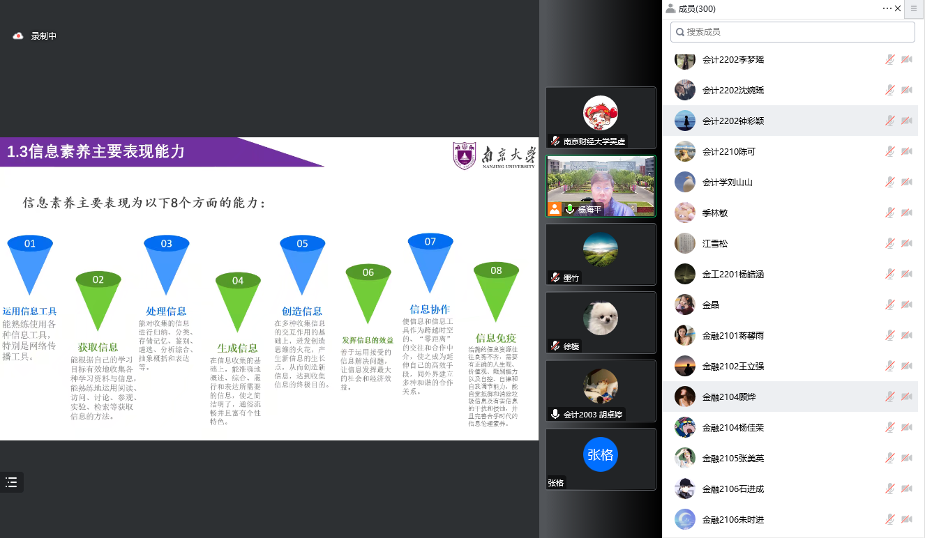第五届“搜知杯”全国财经高校大学生信息素养大赛刚刚拉开帷幕,为进一步提高同学们信息素养和信息检索能力,1月9日晚,图书馆邀请南京大学信息管理学院教授、博士生导师,南京大学出版研究院副院长,中宣部国家新闻出版署智慧出版与知识服务重点实验室主任杨海平教授线上开展了“信息素养与信息检索”讲座。bat365300余名研究生和本科生参加讲座。