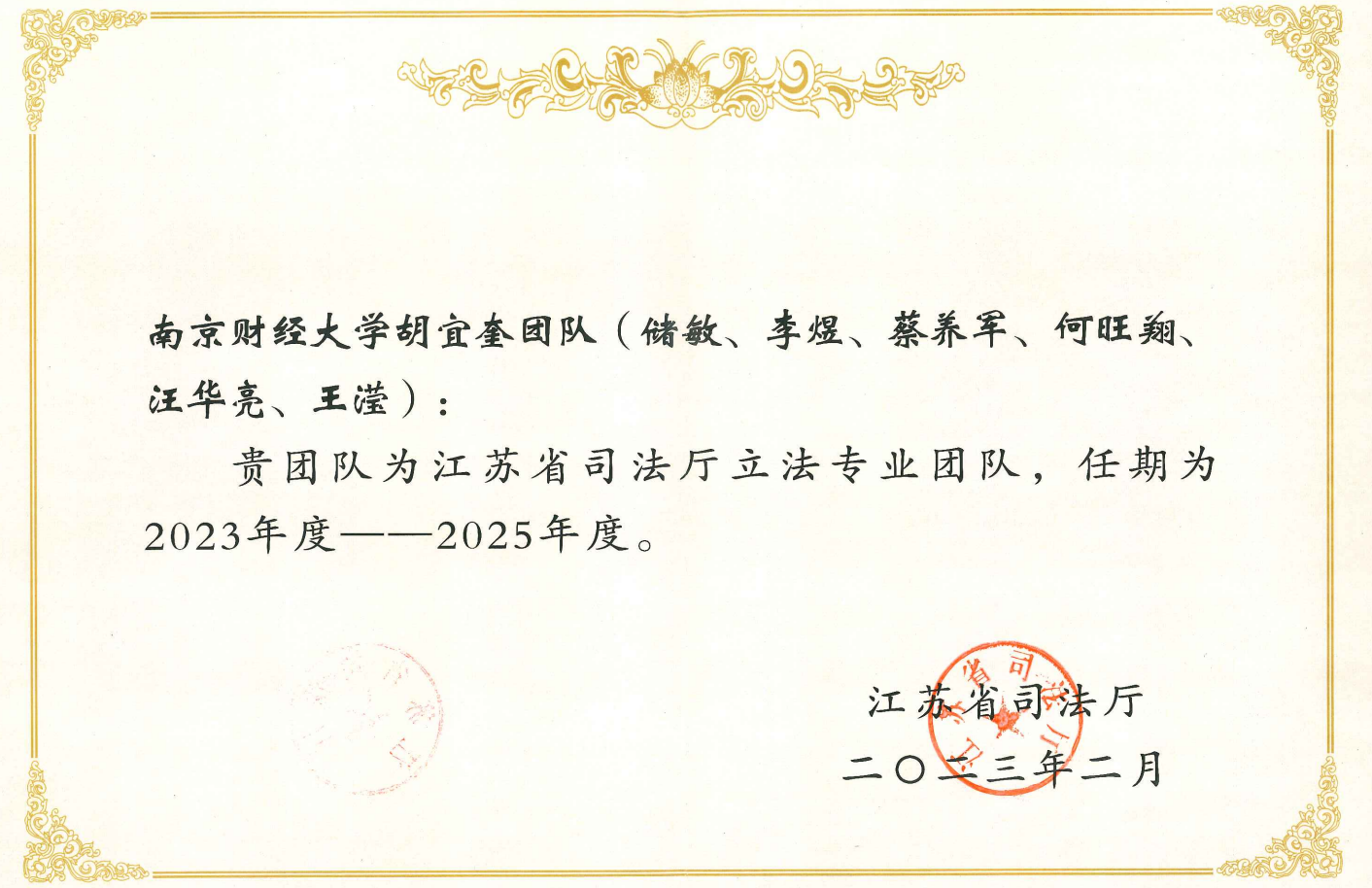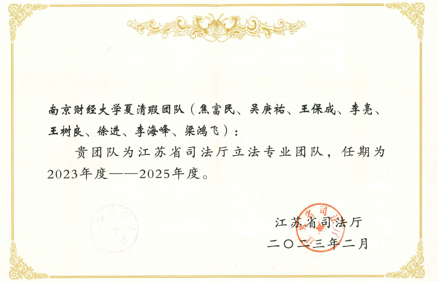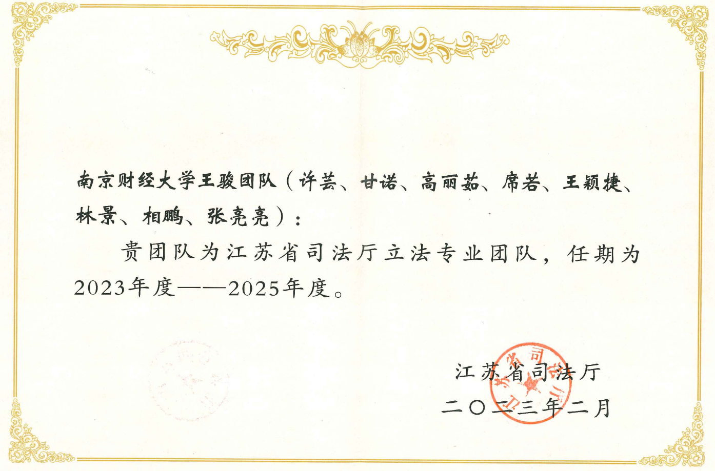 为进一步调整优化立法专业团队队伍,充分发挥专业团队在立法中的智力支持作用,推进地方立法的科学化、民主化,不断提高立法质量,推动以高质量制度供给服务保障江苏高质量发展,江苏省司法厅在广泛征集的基础上,组建了新一届立法专业团队,并向社会公布了入选团队名单。bat365法学院共有三个团队入选,分别是:胡宜奎教授团队(储敏、李煜、蔡养军、何旺翔、汪华亮、王滢),夏清瑕教授团队(焦富民、吴庚祐、王保成、李亮、王树良、徐进、李海峰、梁鸿飞),王骏教授团队(许芸、甘诺、高丽茹、席若、王颖捷、林景、相鹏、张亮亮)。