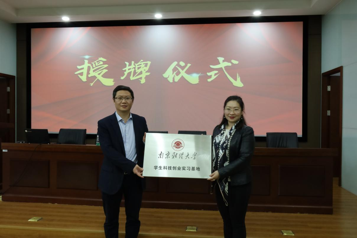 活动中,李慕原副处长为南财大科技园有限公司授予学生科技创业实习基地铜牌,魏红亮总经理代表科技园创业实习基地接受授牌。