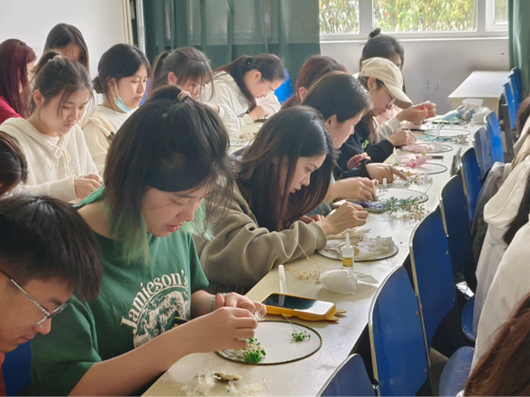 应用数学学院开展了以“五彩颜料绘风采”为主题的团扇创作活动,活动分为劳动价值观宣传教育、干花彩绘团扇制作以及团扇创作灵感分享三部分。同学们挑选自己钟意的材料并精心搭配制作团扇,让春意永久停留在扇面上。分享环节,同学们结合作品,就创作灵感、制作感悟等进行了交流和讨论。