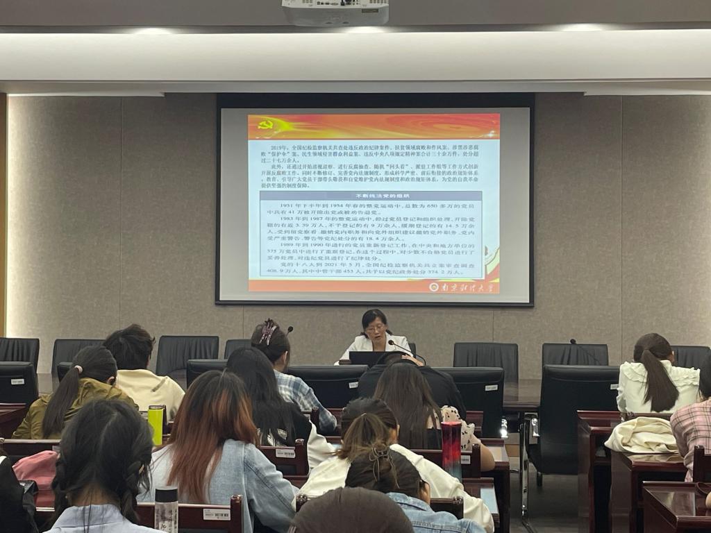 支部书记党课融合讲。4月21日,本科生第四党支部书记董敏围绕“新时期大学生思想行为规范”讲授专题党课。学院各党支部书记强调了坚持制度治党、依规治党,阐释完善党内法规制度体系的重要意义,并希望党员们要自觉学习党章、遵守党章、贯彻党章、维护党章,提升自身行为规范,为全面建设社会主义现代化国家、全面推进中华民族伟大复兴而团结奋斗。