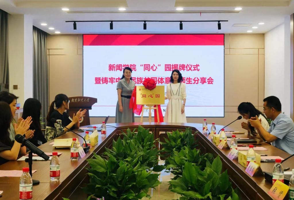 党委常委、统战部部长吕戎与新闻学院党总支书记陈丹为“同心园”揭牌