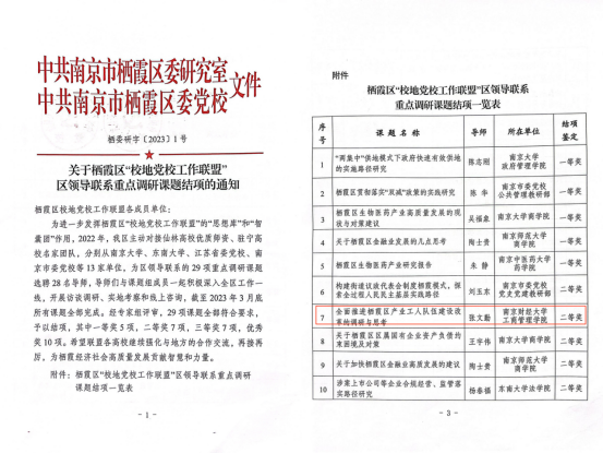 栖霞区“校地党校工作联盟”区领导联系重点调研课题经过专家组评审,于近期公布获奖结果。bat365共有8项课题分获二、三等奖及优秀奖,其中二等奖2项、三等奖2项、优秀奖4项。