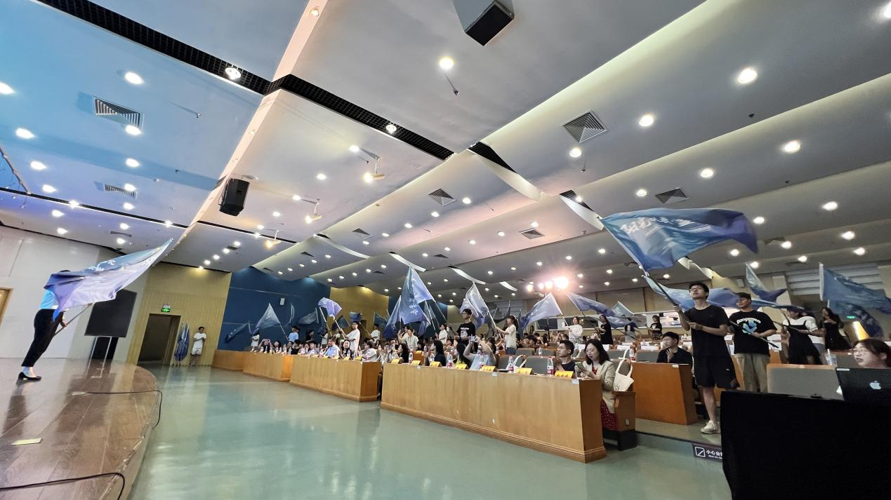 最后,江苏省希望工程办公室四级调研员张宁为艺术设计学院党委副书记张荣霞授总旗并宣布第二届“阳光支教·益青春”2023青少年乡村支教公益项目出征。随着出征旗的挥动,第二届“阳光支教·益青春”2023青少年乡村支教公益项目扶持计划出征仪式圆满结束。
