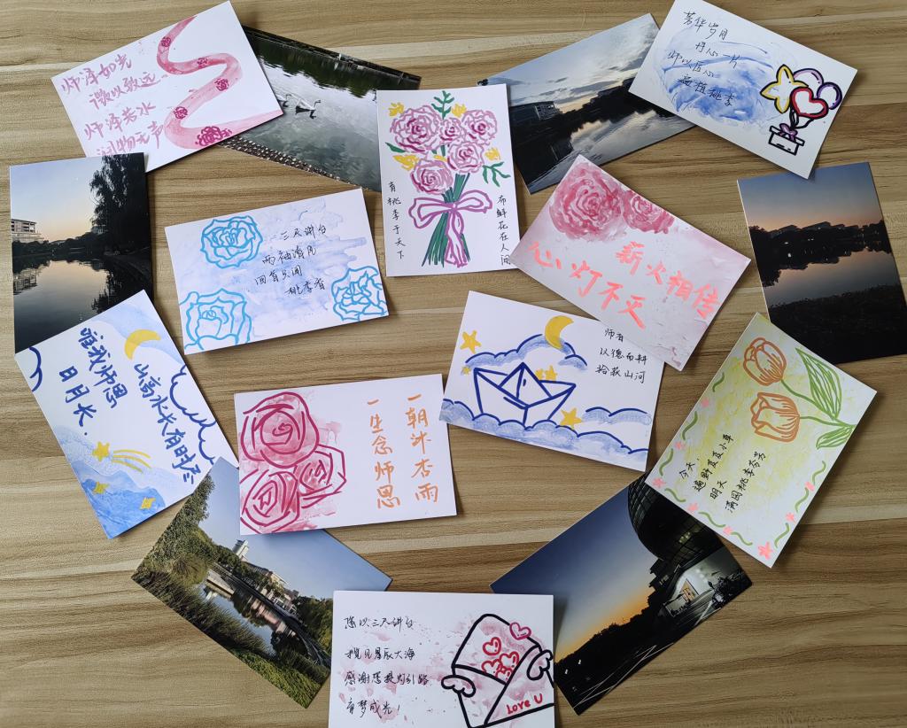 融合传统文化,感念师恩。财政与税务学院学子发挥书法特长,将一句句祝福写在扇子上,为学院的六十余名老师私人定制一把把扇子,借助定制折扇表达对老师的感恩之情。营销与物流管理学院开展了“感念师恩,剪纸传情”庆祝教师节非遗剪纸艺术制作活动。活动现场,在非遗传承人王老师的指导下,同学们了解了剪纸的历史文化、创意、技巧等,通过一幅幅活灵活现、栩栩如生的剪纸艺术作品表达对老师的祝福。工商管理学院开展了“‘茗’记师恩,商路同行”活动,同学们准备好果盘、点心、茶具和各类茶叶,烫杯温壶,摇香洗茶,闻香品茗,同学们恭敬地举起茶盏向各位老师敬茶,感恩老师们的辛苦付出和悉心指教。师生共同探讨茶道文化,并就日常学习和生活中遇到的问题进行了深度的面对面交流。同时协助老师打扫办公区域卫生、整理办公资料、完成文件收尾等工作,以力所能及的劳动回馈老师的辛勤付出。