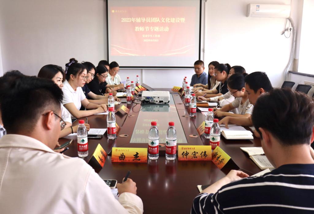 开展座谈交流,提升素养。党委学生工作部召开新入职辅导员座谈会,会议由党委学生工作部副部长袁怡琨主持。袁怡琨副部长为辛勤奋战在学工一线的辅导员送上节日的慰问和诚挚的祝福,鼓励新入职辅导员以学校“强基”“领航”“卓越”三类辅导员成长培训计划为契机,全面提升素质能力,总结凝练工作理念,坚守教育初心,勇担育人使命。与会辅导员分别介绍了工作情况、工作感悟及目前存在的主要困难。会计学院“能力树工作室”召开“铸魂育人担使命,立德树人守初心”教师节主题座谈会,工作室全体成员参加座谈会。大家学习了习近平总书记关于教育的重要论述,分享了如何成为有理想信念、有道德情操、有扎实学识、有仁爱之心的“四有”好老师的学习心得,从学生培养、学工队伍建设、党团建设等方面展开交流,积极为学院发展和人才培养工作建言献策。