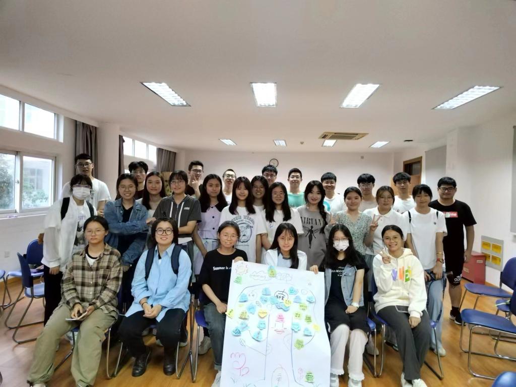 “新”心相印,凝心聚力——新生班级团辅活动中,围绕破冰行动、建立团体、团队合作、增进熟知等主题,新生们参与了“九宫格绘画—我的大学”“诺亚方舟”“建高塔”“坐地起身”“信任圈”“班级愿望树”等团体活动。在活动过程中,同学们介绍自己,认识他人,增进了彼此了解,感受到集体的温暖与力量。