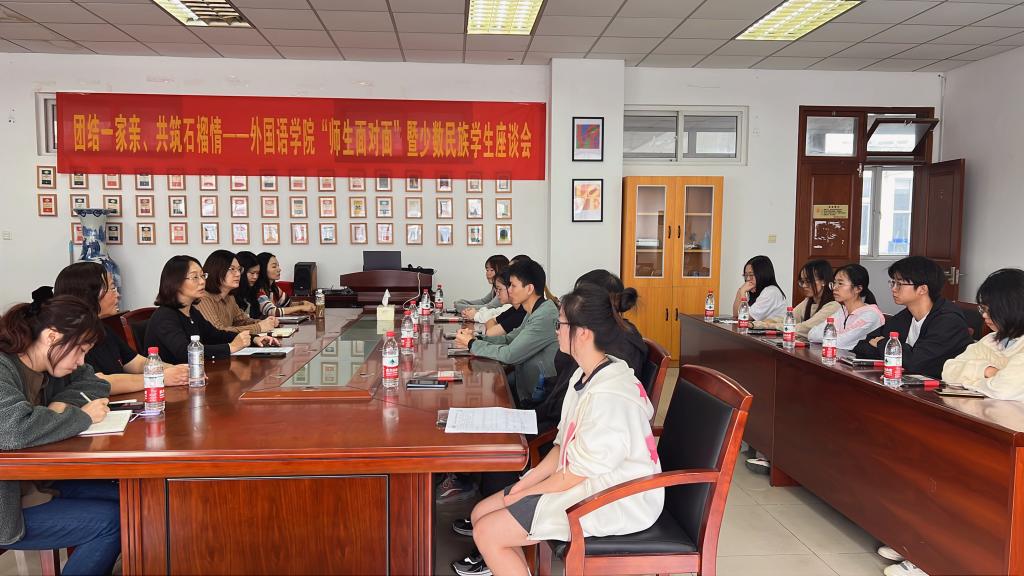 学业帮扶添动力。10月12日上午,外国语学院组织召开了“团结一家亲、共筑石榴情”——“师生面对面”暨少数民族学生座谈会。来自7个民族的11名学生代表分享了自己在大学里的所学所获、所思所感,对学校民族文化活动、学校建设等方面提出了意见和建议,同时也提出了自己在学业中的困惑、日常生活等方面遇到的问题。学院针对部分少数民族学生学习基础薄弱的情况,牵头组织授课教师、辅导员、班主任、本科生、研究生党员组成学业帮扶梯队,设立“满天星”帮扶和“同心筑梦”计划,开展师生“一帮一”“一帮多”“多帮一”“多帮多”工作,通过激发动力、坚韧毅力和提升能力,引导少数民族学生由被帮扶学习转变为自主学习,持续为少数民族学生营造“家文化”。