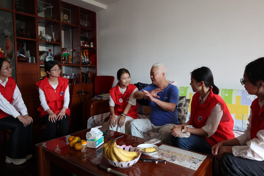 国际经贸学院志愿者走进怡康社区独居老人、退役老军人、老党员家中,帮助老人们打扫卫生,送上糕点和温暖祝福。走访中,82岁高龄的李爱源老人,讲述了自己如何从一个懵懂无知的少年,成长为一名合格军人的人生故事。退役后,李老发挥余热,仍然投入到社区党务工作中,获得军地多项荣誉。