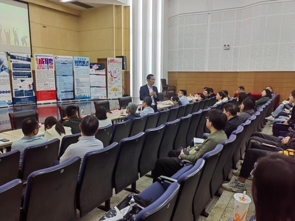 企业宣讲环节,各机构负责人分别从公司的实力资质、规章制度、福利待遇、晋升机制和招聘要求等方面进行宣讲。应聘环节中,同学们踊跃递交简历,与用人单位负责人沟通,寻找适合自己的岗位,现场气氛热烈。