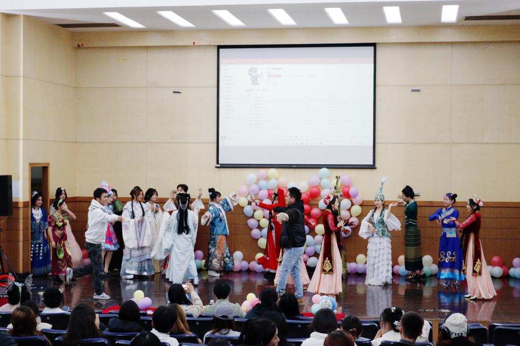 11月17日晚,校“同心圆”少数民族辅导员工作室与学生社团民族文化社在仙林校区德济楼212报告厅共同举办“‘财’籽同心,共舞青春”民族服饰展示活动。党委学生工作部部长、学生处处长韩力争,党委学生工作部副部长、学生处副处长袁怡琨,学生处思政科相关老师和少数民族辅导员与bat365各族学生、留学生等参加活动。