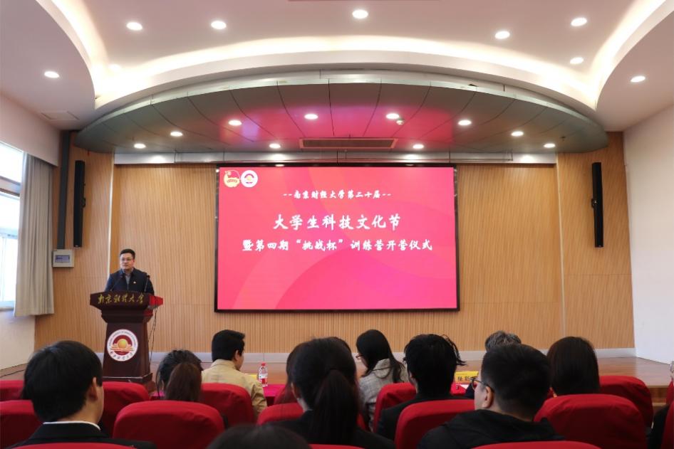 11月24日中午,由校团委、学生处、教务处、科研处主办,校团委科创实践部、大学生科学技术协会承办的第二十届大学生科技文化节开幕式暨第四期“挑战杯”训练营开营仪式在仙林校区大学生活动中心三楼报告厅顺利举行。学生处副处长袁怡琨、教务处副处长赵昂、科研处副处长陆颖健、公共管理学院副教授梁誉、各学院团委书记、第三期和第四期挑战杯训练营学员、“挑战杯”比赛团队指导老师和成员代表参加开幕式。开幕式由校团委副书记陈涛主持。