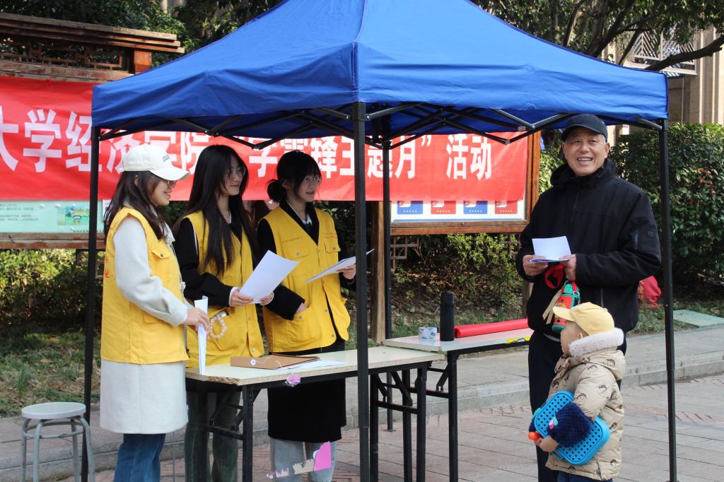 国际经贸学院各团支部积极积极开展雷锋日主题团课活动,重温雷锋事迹,探讨新时代大学生如何践行雷锋精神;“银发生辉·共筑未来”党团社区志愿服务小队前往姚坊门社区养老服务中心,准备精美的糕点和水果为年过80岁的14位老人集体祝寿。
