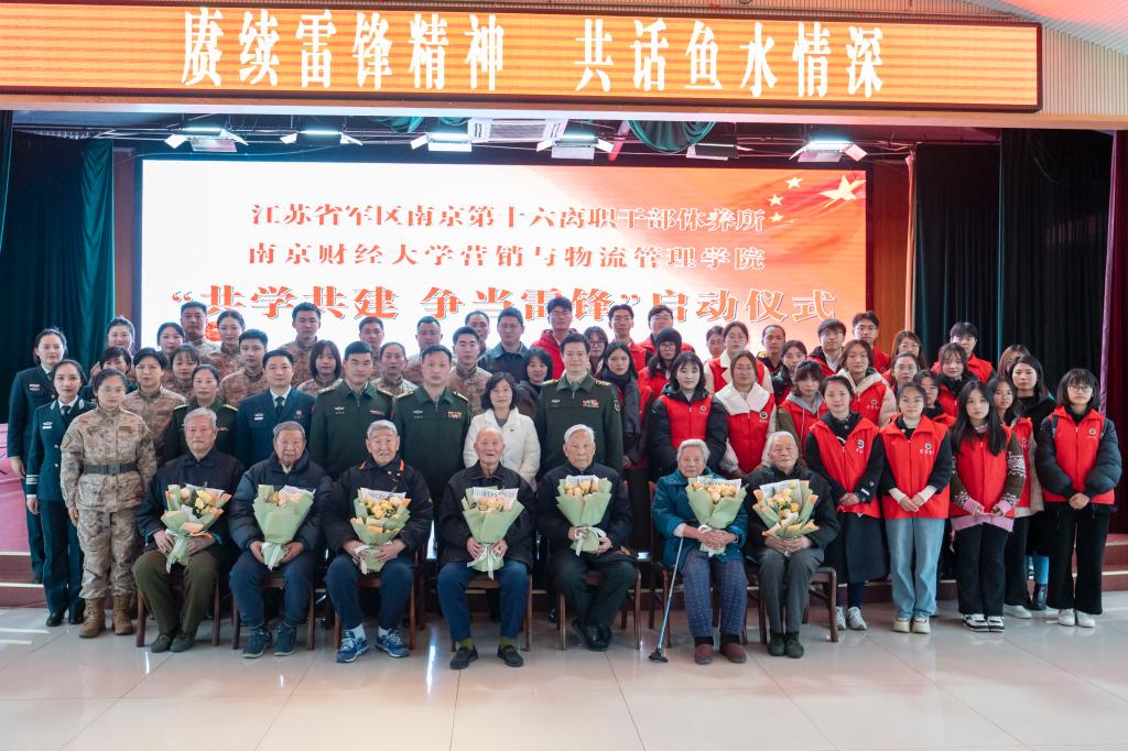 营销与物流管理学院志愿者前往南京朗诗常青藤敬老院睿城站,为老人打扫卫生、与他们促膝长谈、共同编织中国结、和老人合唱……小小的敬老院中充满了爱与温情。学院与江苏省军区南京第十六离职干部休养所联合开展“共学共建,争当雷锋”主题活动并签订共建协议。志愿者前往干休所,沉浸式聆听“情景党课”——《丰碑颂》,干休所工作人员与学生志愿者代表通过精彩的表演带领现场观众共同追寻雷锋足迹,传承红色精神。