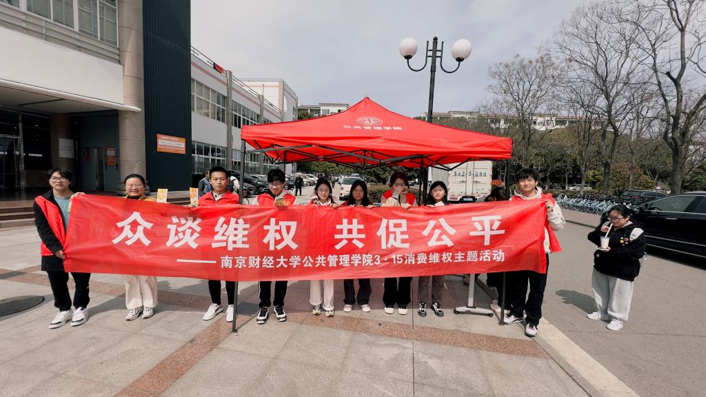 公共管理学院在中苑食堂广场开展“众谈维权,共促公平”活动。组织开展消费维权知识答题活动,大家踊跃答题,并依据分数获得相应奖品;分发《中华人民共和国消费者权益保护法》法制宣传资料并展示假冒伪劣产品图片,为同学们讲解分辨伪劣产品的方法;分享维权成功经历,为同学们提供经验方法。