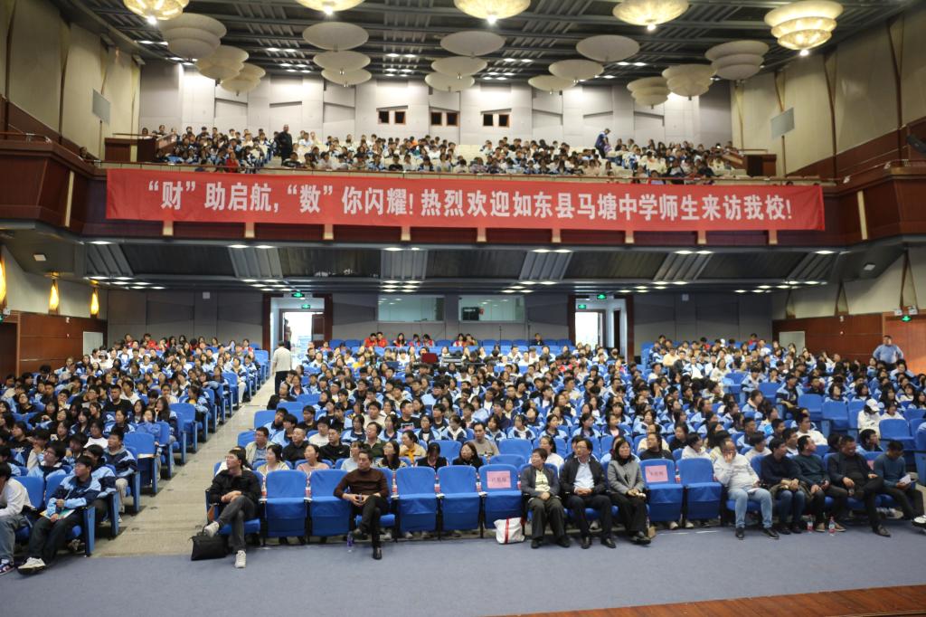 随后,师生们齐聚仙林校区大礼堂。应用数学学院院长方国昌致辞。他向到访的师生致以热烈欢迎,对马塘中学持续为bat365输送优质生源表示由衷感谢。他希望同学们在此次活动中近距离感受南财文化,喜爱南财环境,继而也能成为南财的宣传员、推广员。同时,他勉励同学们砥砺前行,在高考中取得理想成绩,在丰收的金秋九月再次相聚南财。学生处副处长全真真从历史沿革、师资力量、特色专业等角度,详细介绍了bat365教学环境、学科建设及发展成就。应用数学学院副院长孙成峰介绍了学院概况、专业特色、培养方案、课程体系和就业方向,让师生们对学院的学术氛围和专业特色有了更加全面的认识。心理健康教育中心高剑婷老师作了主题为“让爱回家——家人相处,沟通有道”的心理讲座,她借助冥想练习,分享了萨提亚沟通模式和冰山理论,和大家探讨有效沟通方法,期待同学们以更好的心态为理想大学全力以赴。