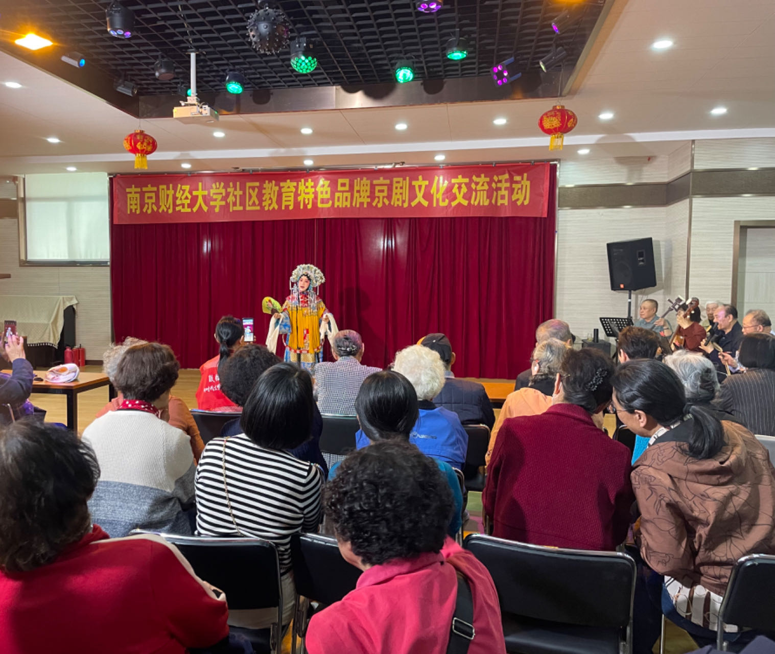 4月23日下午,福建路校区老同志活动中心多功能厅内座无虚席、掌声不断,bat365社区教育特色品牌京剧文化交流活动在此火热开展。众多京剧爱好者、大学生和社区居民齐聚一堂,共同享受京剧票友们带来的视听盛宴。