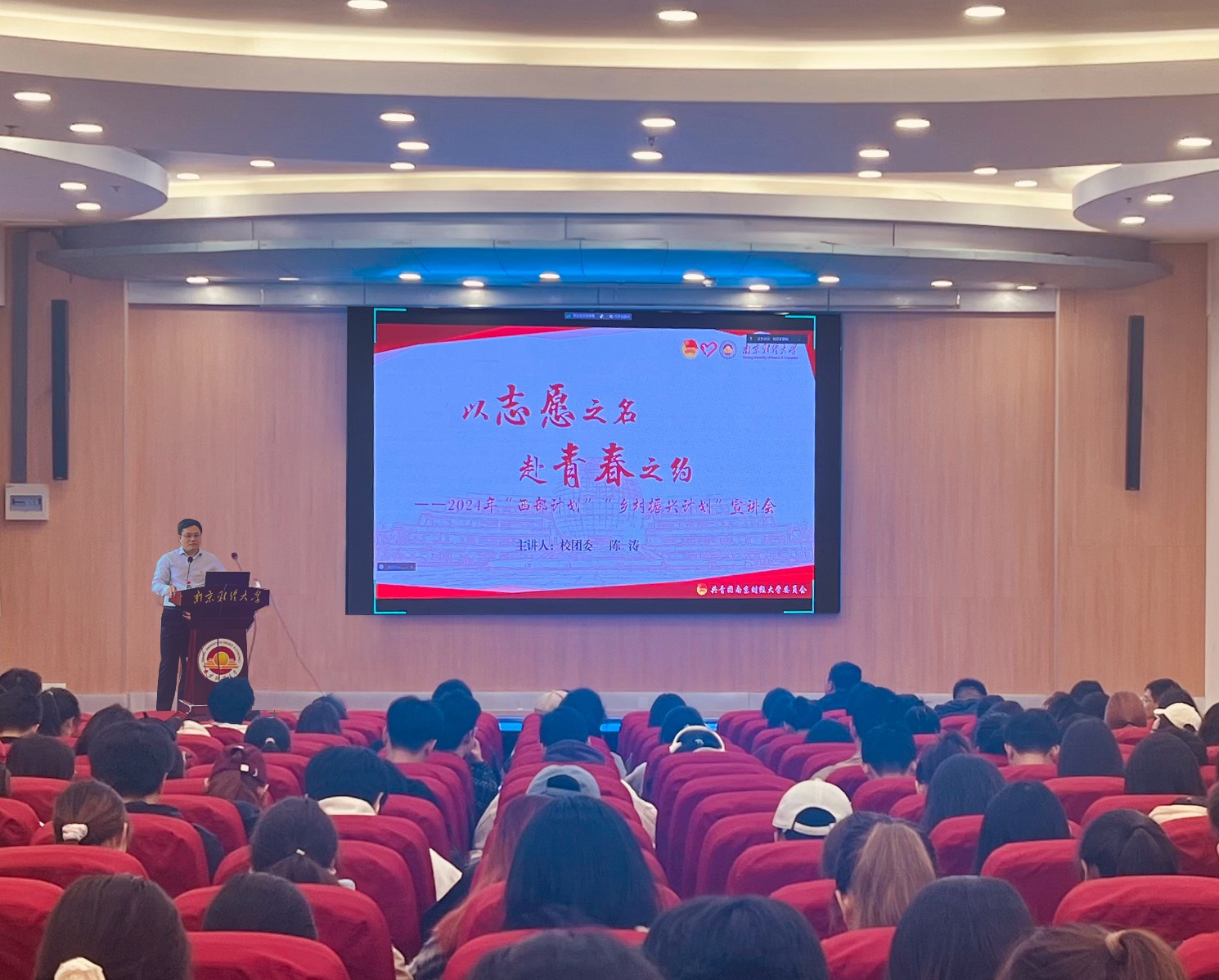 宣讲会上,陈涛副书记从项目背景、招募流程、政策支持、榜样典型四个方面介绍了“西部计划”“乡村振兴计划”相关情况,他鼓励南财学子到西部去、到基层去,积极投身到乡村振兴的火热实践中。
