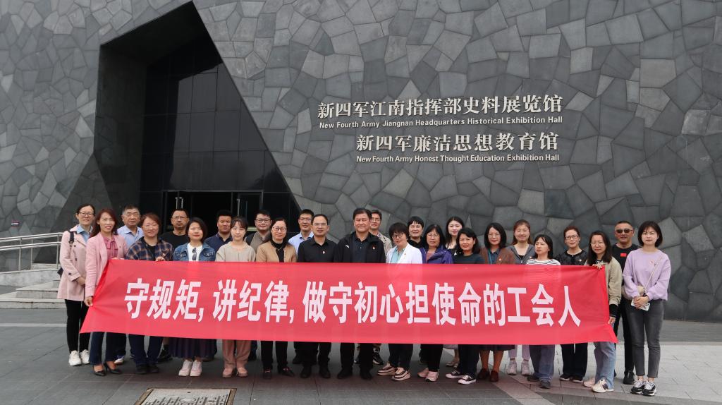 封闭式专题学习结束后,大家来到了新四军江南指挥部纪念馆,参观了新四军江南指挥部史料展馆、新四军廉洁思想教育馆等。一段段影片、一幅幅照片、一件件实物,结合多媒体、高科技、互动性的沉浸式体验,生动再现了新四军江南指挥部在抗日战争时期艰苦卓绝的战斗历程和丰功伟绩;新四军听党指挥的铁的信念、报国为民的铁的担当、英勇顽强的铁的作风和执纪严明的铁的纪律深深感染着在场的每一位工会干部,他们表示要继承发扬党的优良传统和作风,筑牢廉洁自律防线,加强纪律建设,锤炼过硬作风,做一名守初心、有责任、有担当的工会人。