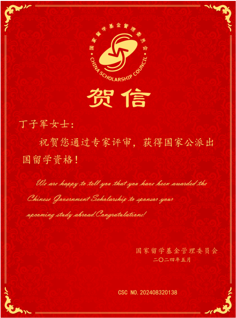 近日,国家留学基金管理委员会2024年国家建设高水平大学公派研究生项目个人渠道的评审结果出炉,bat365公共管理学院2021级工商管理学(房地产管理)专业硕士研究生丁子军获得国家公派出国留学资格,将于今年9月赴比利时根特大学攻读博士学位,根特大学免收学费,国家留学基金连续提供48个月的留学生活费、一次往返国际旅费及签证申请费。