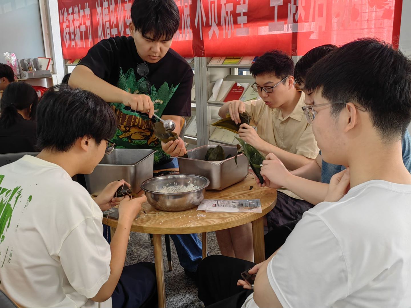 财政与税务学院开展“端午传浓情,‘税’月绽芳华”活动。同学们在初心小站和食堂阿姨一起包粽子。学院准备了汉服和各类少数民族服装,同学们身着汉服,在天鹅湖畔、图书馆等校园各地齐声朗诵端午节相关诗词,体会端午节的历史和文化内涵。