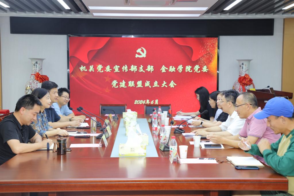 6月13日下午,为进一步激发党组织和党员活力,加强组织体系建设,切实推进党建与业务“一融双高”,党委宣传部与金融学院在仙林校区德经楼508会议室举办党建联盟成立大会暨“党建+”融合共建签约仪式。党委常委、宣传部部长朱军出席会议。金融学院领导班子成员、党员师生、党委宣传部相关人员参加会议。会议由金融学院党委副书记张士青主持。