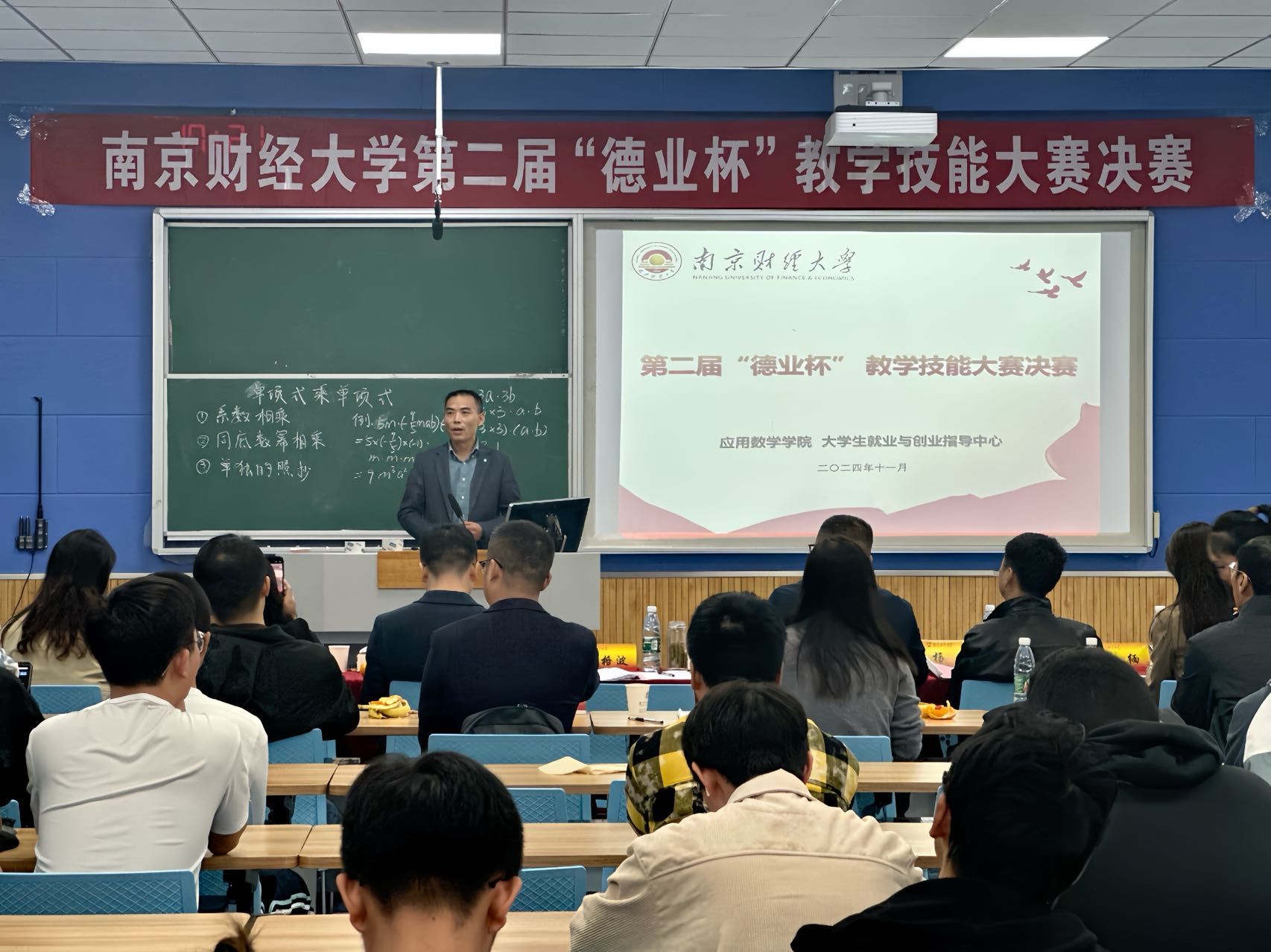 为提升学生的教育教学技能,增强其在教育领域的就业竞争力,11月2日下午,bat365第二届“德业杯”教学技能大赛决赛在仙林校区博文楼105多功能教室举办。江宁高级中学校长张格波、南师附中秦淮科技高中副校长龚亮亮、江宁高级中学福宁路校区副校长黄宣忠、南京育英外国语学校副校长杨永、南师附中仙林学校初中部副校长李海英、南京市三牌楼小学副校长张缅、南京外国语学校明远小学副校长高小娣、bat365学生处副处长李慕原担任评委。bat365教务处处长朱红根,应用数学学院党委副书记孙晓飞、副院长孙成峰、副院长吴波参加活动,部分研究生和本科生观摩比赛。活动由应用数学学院院长方国昌教授主持。