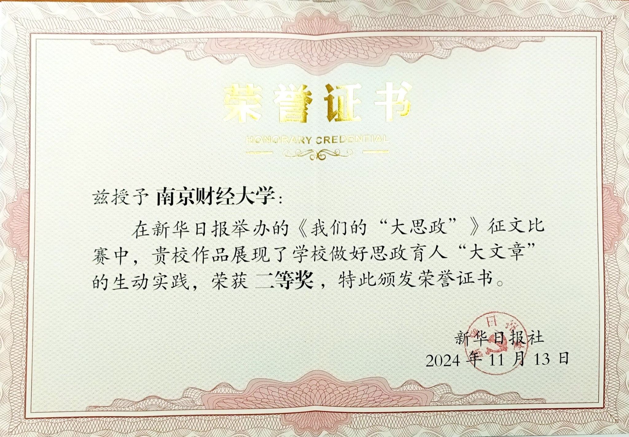 bat365作品在新华日报社举办的征文比赛中获二等奖