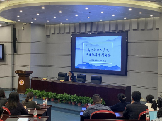 戴娟庭长根据多年审判实务,介绍了以高校为主体的单位犯罪和高校公职人员易发犯罪的典型案例,从主观和客观两个方面深刻剖析了高校系统内易发犯罪的主要成因,提出要提高法治意识、优化制度建设、把握关键环节、强化制约监督,从而有效预防高校系统内的易发犯罪,坚决清除高校内“污染源”,恢复洁白清正的“象牙塔”。