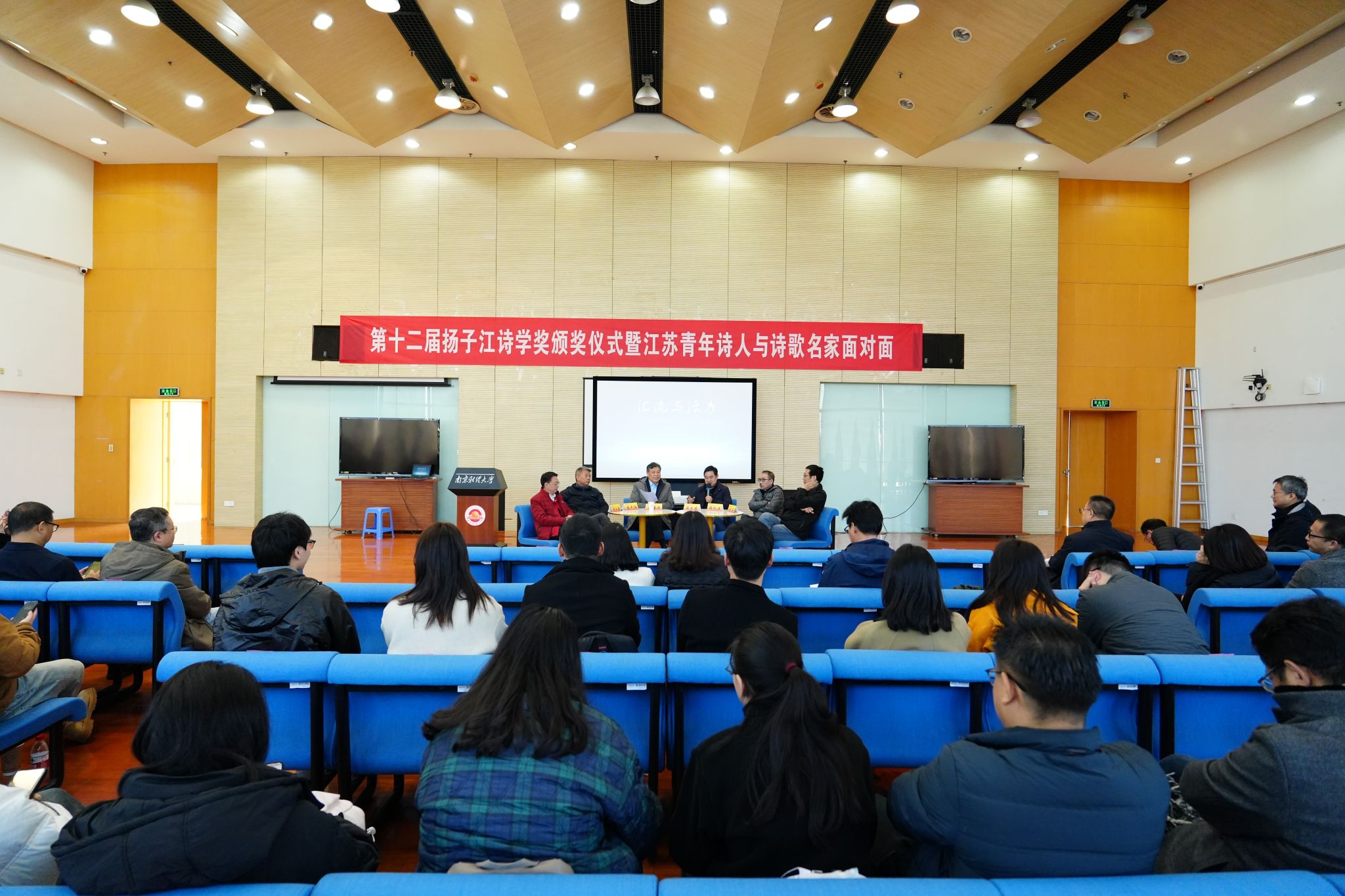 11月30日上午,第十二届扬子江诗学奖颁奖仪式暨江苏青年诗人与诗歌名家面对面活动在仙林校区世界之窗举办。该活动由江苏省作协和bat365主办,扬子江诗刊、校团委承办。中国作家协会诗歌委员会主任、原中国作家协会副主席吉狄马加,江苏省作协党组书记、书记处第一书记、常务副主席郑焱,江苏省作协党组成员、书记处书记、副主席、《钟山》杂志主编贾梦玮,江苏省作协副主席、江苏省作协诗歌委员会主任、《扬子江诗刊》主编胡弦,bat365原党委副书记、评论家温潘亚教授,安徽省文联主席、作协主席、诗人陈先发,江苏青年诗人代表、bat365学生代表、诗歌爱好者共120余人参加活动。