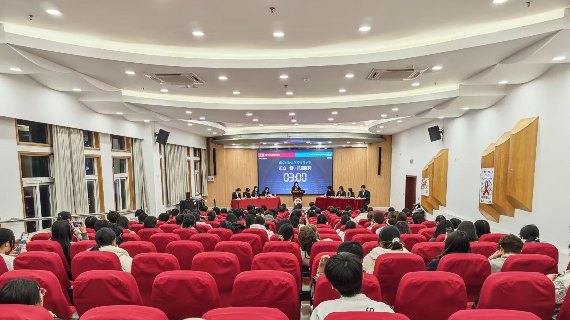 比赛伊始,正方与反方辩手们依次登场,他们衣着整齐,精神饱满,展现出自信的风采。正方观点为“大学生应该把兴趣当职业”,他们从就业市场饱和,以兴趣为导向的就业给予年轻人内驱力、拓宽社会职业的边界、注入新活力等多方面展开论述,条理清晰,逻辑严谨,试图以有力的论据支撑己方立场。反方则持“大学生不应该把兴趣当职业”的观点,毫不示弱,通过兴趣变为职业的可行性很低、就业压力大以及将兴趣作为职业会带来落差感和消极情绪等进行反驳,言辞犀利,思维敏捷,迅速抓住正方观点的漏洞予以回击。