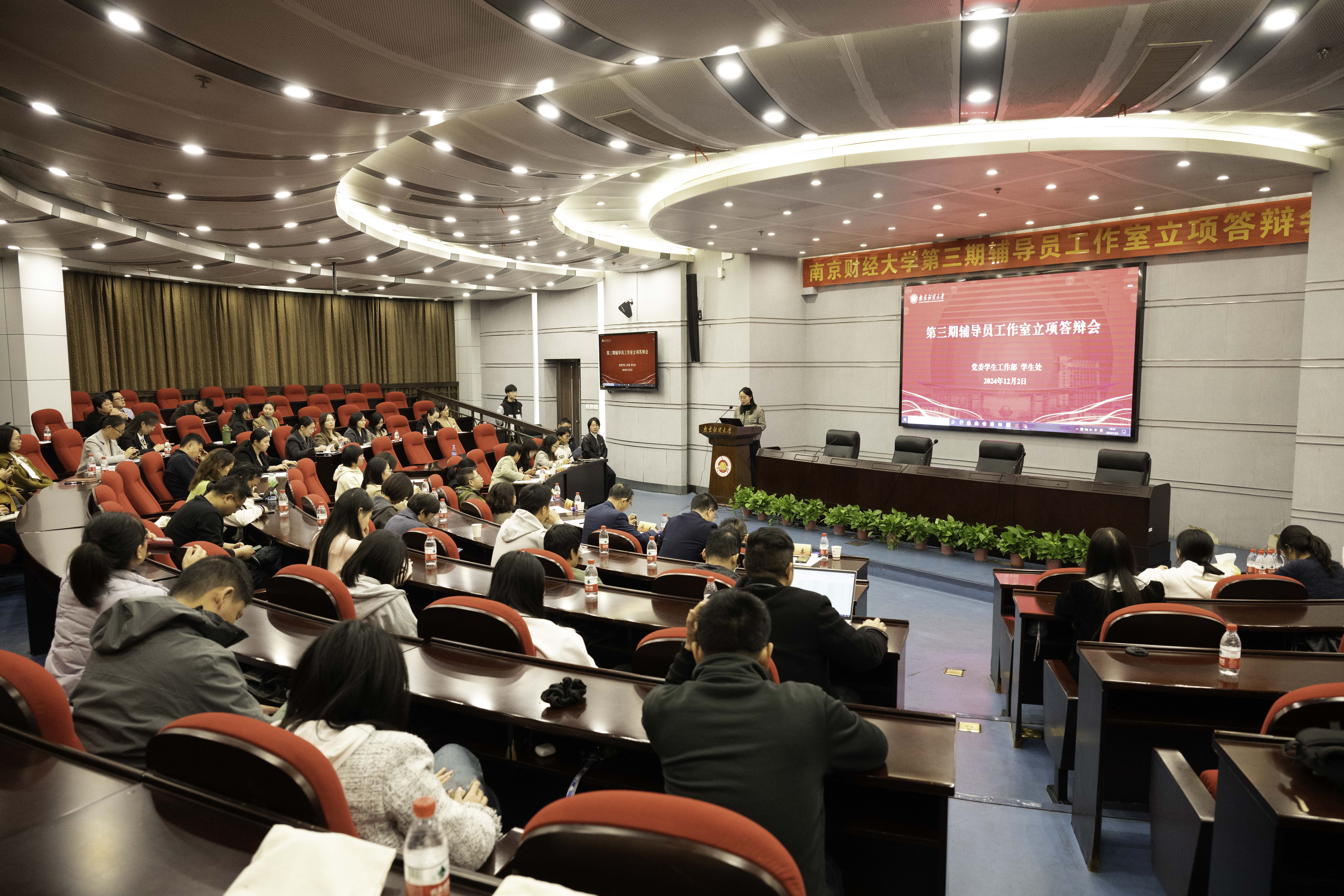 为持续加强辅导员队伍职业化、专业化、专家化建设,12月2日,党委学生工作部在仙林校区行政楼二楼报告厅举办第三期辅导员工作室立项答辩会。南京航空航天大学党委学生工作部部长、学生处处长王静,中国药科大学学生工作处(部)、研究生工作部部长杜文清,南京农业大学学生工作部(处)部长熊富强,南京师范大学学生工作处处长兼党委学生工作部部长景飞,南京医科大学本研学生工作部常务副部长、学生处处长林炜,南京艺术学院党委学生工作部部长仲社,南京邮电大学外国语学院党委副书记、副院长、江苏省首批高校辅导员名师工作室主持人高艳丽,bat365党委学生工作部部长、学生处处长韩力争担任评委。学生处思政科和各学院辅导员、工作室成员等到场观摩学习。答辩会由国际经贸学院辅导员邓盛佳主持。