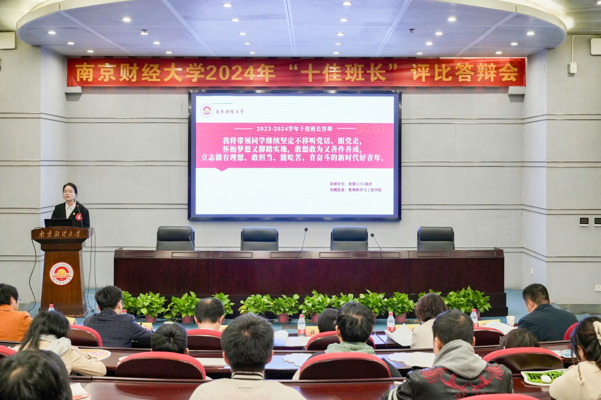 据悉,本次“十佳班长”评比答辩会由党委学生工作部、学生处首次举办,旨在选树一批先锋、打造一支力量、形成一个品牌,通过榜样引领、朋辈互助,引领全体班长以“小我”铸就“大我”,带动更多学生砥砺前行,勇创佳绩,在南财这片沃土实现青春理想,汇聚启航力量。
