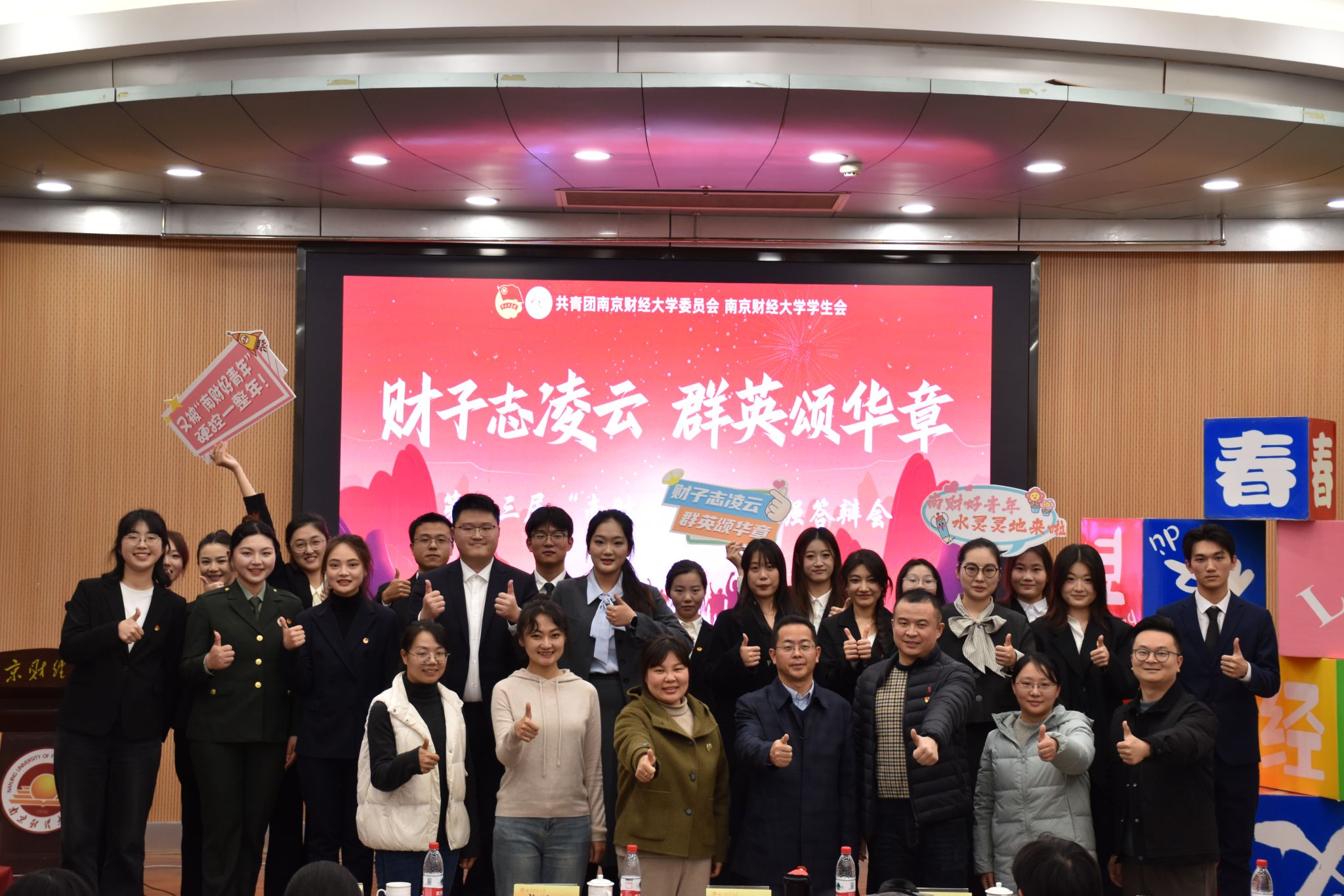 12月11日晚,由校团委、校学生会主办的“财子志凌云,群英颂华章”第十三届“南财好青年”人物评选活动落下帷幕。党政办副主任张亦佳,党委宣传部副部长龚莉红,党委统战部副部长王军,党委学生工作部副部长、招生办公室主任全真真,心理健康教育中心副主任吴垠等受邀担任评委。校团委副书记胡新蕲以及由各团属学生组织负责人、各学院代表组成的现场评审团一同观摩答辩。