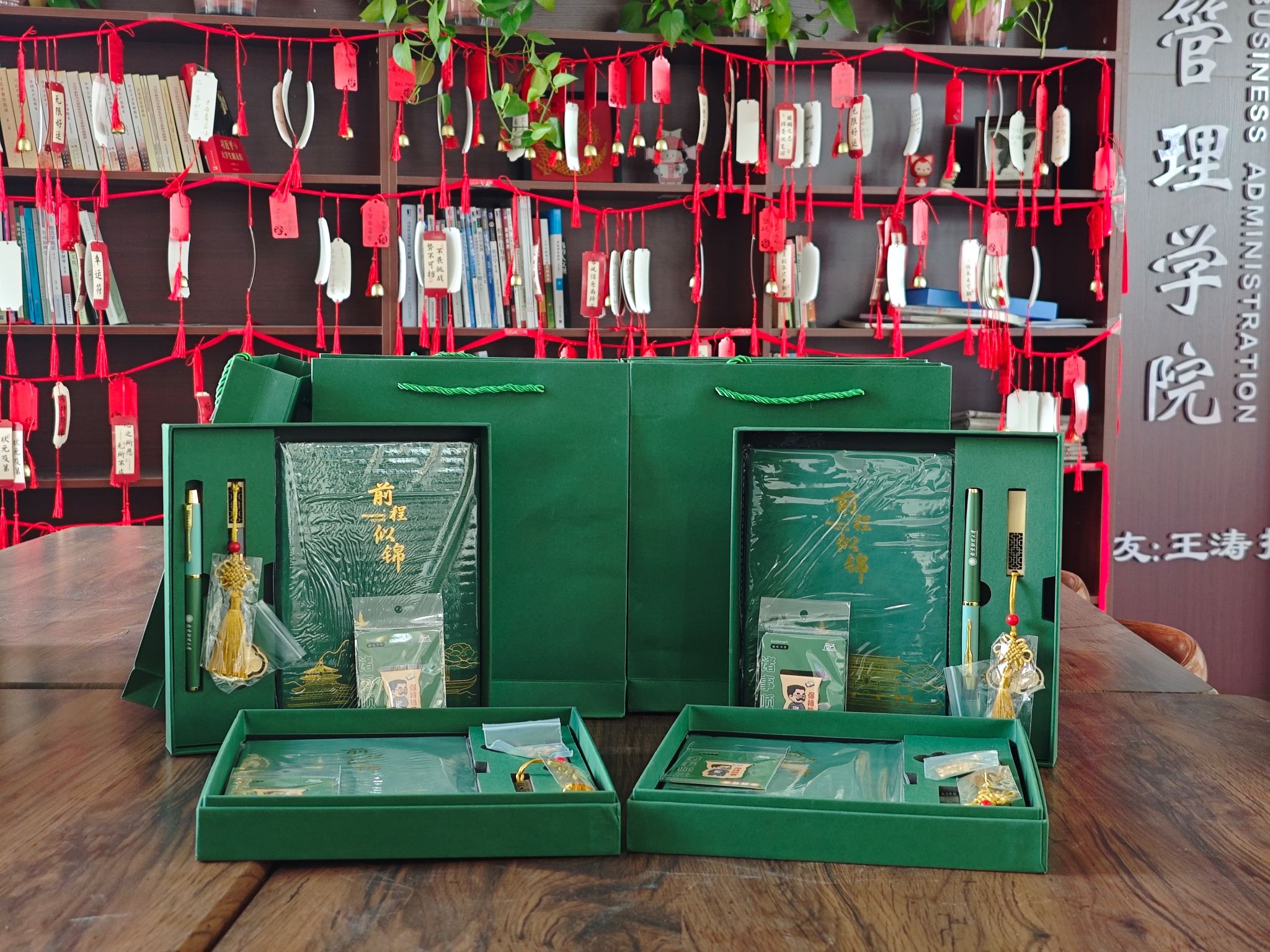 工商管理学院学院领导分享关于考研的个人感受和备考建议,希望同学们在最后的冲刺阶段调整好作息,以饱满的精神状态迎接考试。老师们将一份份饱含祝福的考研文创礼包送到考研学子手中。绿意盎然的礼盒,承载着每一位考研学子的梦想,寄托着每一位教师的希望,每一次交付都是力量的传递,每一句鼓励都如春风化雨,滋润着每一位学子的心田。