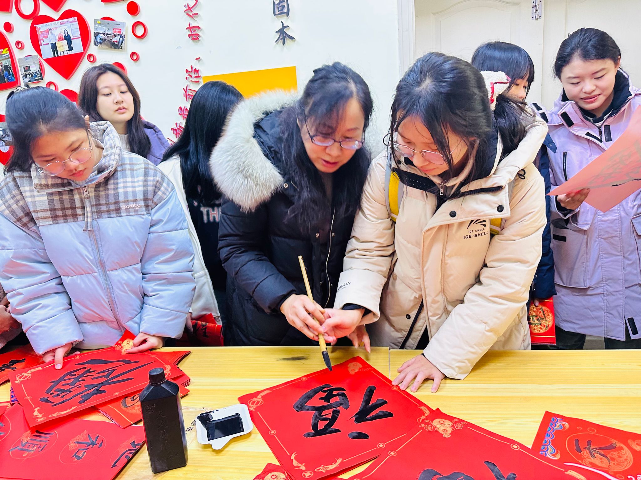 法学院党员教师在仙林校区北苑“一站式”学生社区服务中心开展“走进公寓,送‘福’到家”活动。党员教师挥毫泼墨,写出了字体灵动、苍劲有力的新春对联和“福”字,将心底的美好祝愿化作一张张寓意平安和谐、吉祥如意的书法作品,书写出对同学们的美好祝愿。同学们也踊跃参与,在老师的指导下写出了有模有样的作品。“学海无涯勤者进,书山有路志者攀”……一副副对联表达了对新年的美好祝愿和对同学们的殷切期望。