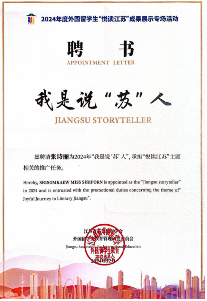 SRISOMKAEW MISS SIRIPORN(张诗丽)被聘为“我是说‘苏’人”