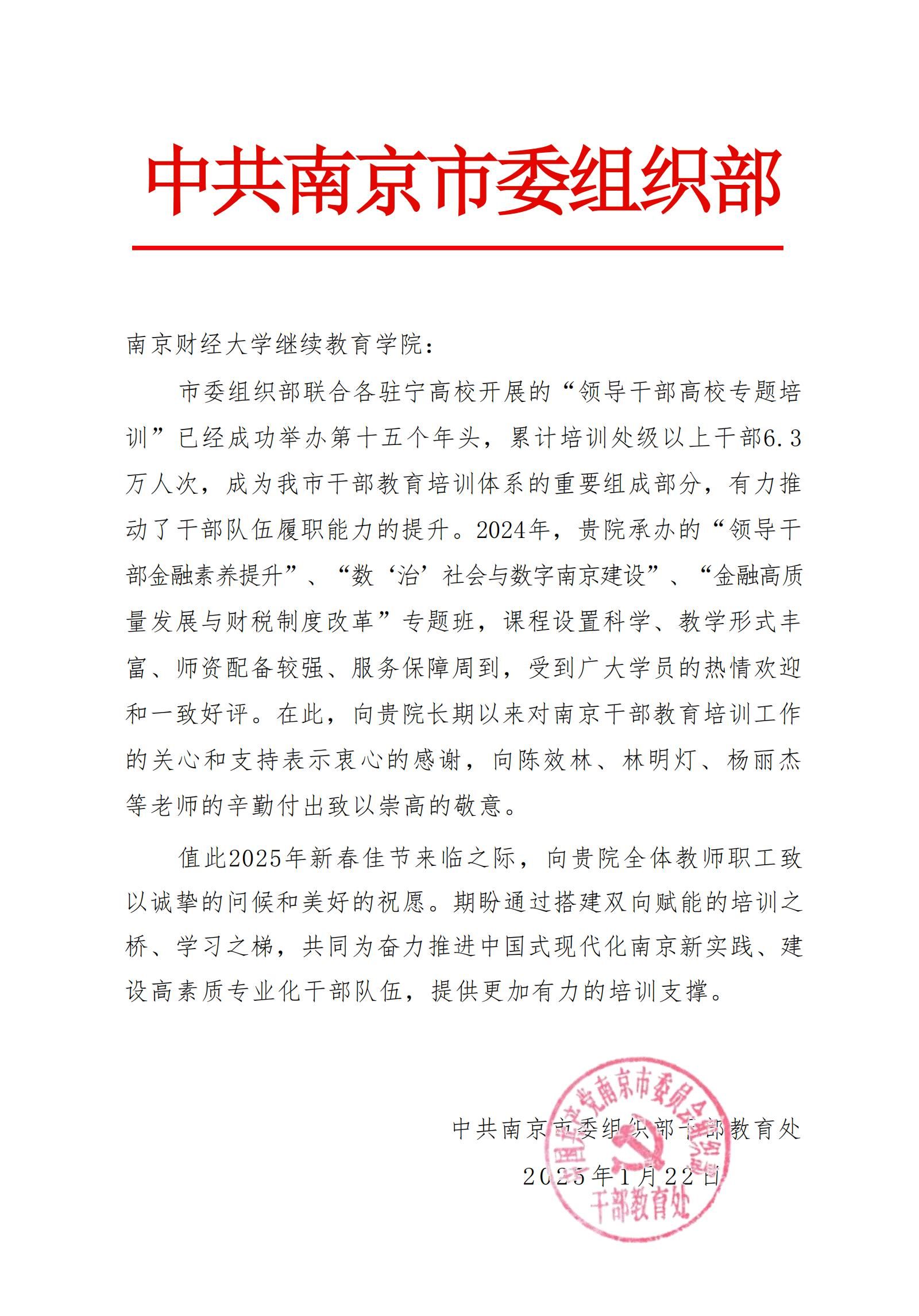 近日,中共南京市委组织部干部教育处向bat365继续教育学院发来感谢信,对bat365在南京干部教育培训工作中作出的贡献表示感谢。
