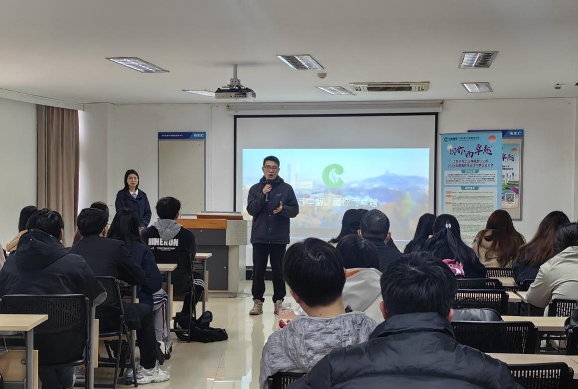 3月14日下午,江苏中烟工业有限责任公司2025年度高校毕业生招聘宣讲会在仙林校区大学生活动中心116室举行。宣讲会上,企业代表介绍了公司发展概况、招聘岗位及求职流程,并围绕岗位要求和职业发展与在场学生交流;公司2018届校友分享了个人职业成长经历,增强了同学们的信心。