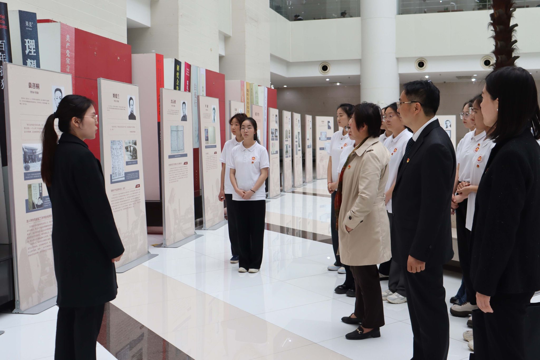 仪式结束后,与会领导嘉宾同师生一起观展,雨花台烈士陵园管理局社会教育处讲解员龚姝彤进行首场解说。