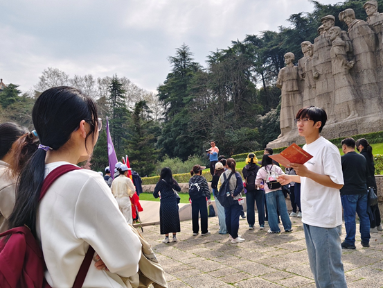 瞻仰祭奠,缅怀革命先烈。国际经贸学院学子分批前往雨花台烈士陵园、梅园新村纪念馆、南京抗日航空烈士纪念馆等10余地开展祭奠活动,累计1000余人次参与,通过默哀献花、诵读英烈家书、观看红色影视作品等方式,感悟信仰力量。公共管理学院、外国语学院学子来到雨花台烈士陵园,瞻仰烈士就义群雕,肃立默哀,走进烈士纪念馆,聆听革命先烈的英雄事迹,在电子留言板上留言,表达对革命烈士们的崇高敬意和感恩之情。营销与物流管理学院支部党员以手工制作柳环的方式,寄托对先烈的深切追思。金融学院学子来到南京抗日航空烈士纪念馆,通过历史文物和珍贵照片,了解先烈生平事迹,烈士墓前敬献鲜花,表达敬意与哀悼之情。法学院与中建二局土木公司江苏分公司联合开展“沉浸式”红色教育与“联动式”交流实践,双方党员共同前往南京抗日航空烈士纪念馆开展悼念活动,现场举行“实习实践基地”共建签约暨揭牌仪式,未来双方将在建设工程法律实务研究、专业人才定向培养、学生实习就业等方面展开深度合作。