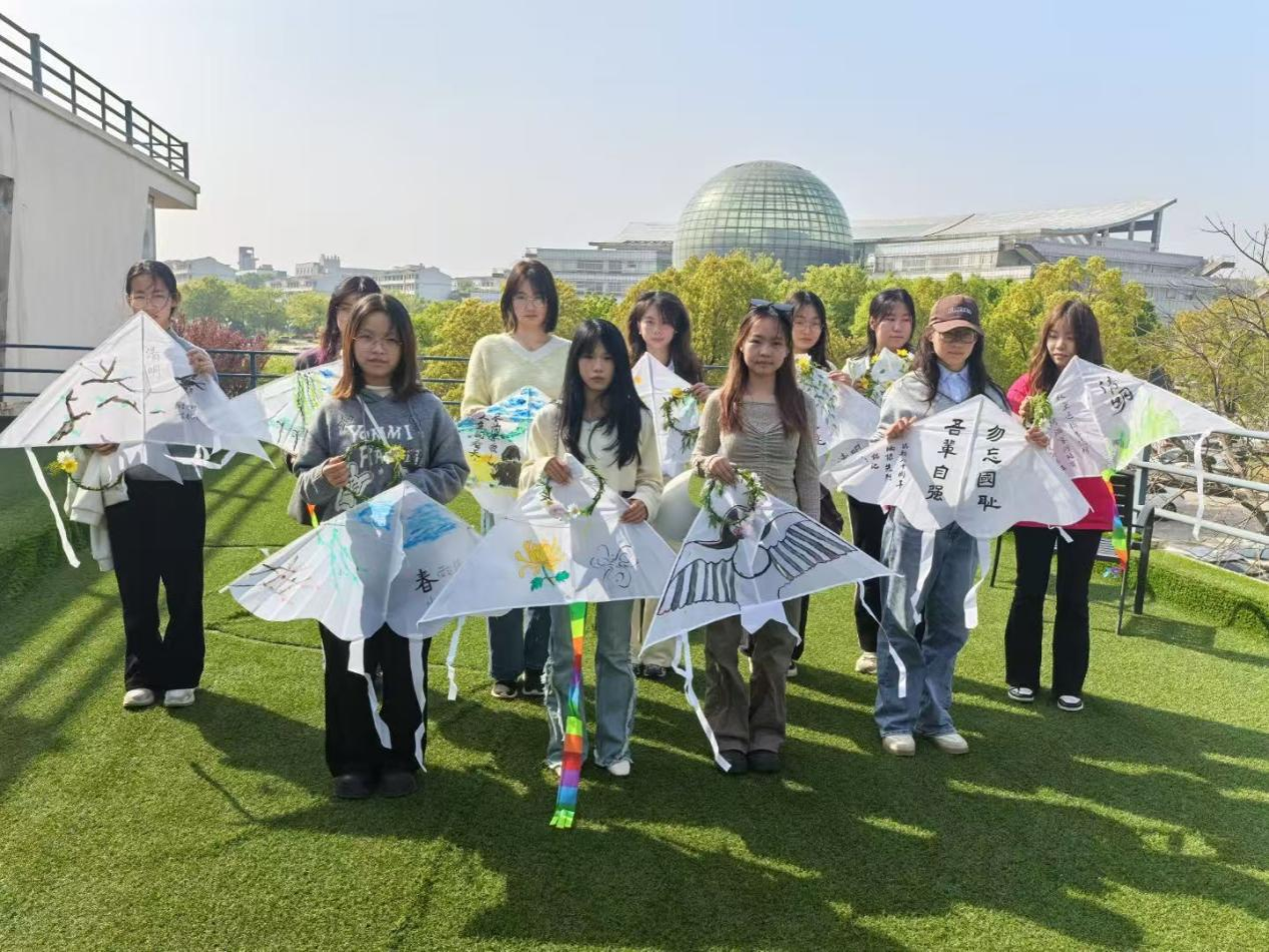 艺术创作,赓续红色血脉。艺术设计学院师生前往镇江茅山红色教育基地缅怀革命英烈,并将英勇顽强、艰苦奋斗的精神融入到书法元素文创设计,创作出铁军精神主题香薰、烽火莲花灯、清明主题挂件等书法文创作品。财政与税务学院学子齐聚德经楼二楼草坪制作纸鸢,寄托祈福纳祥的美好愿景,并用柳条编织精巧的手环,表达对革命烈士的无限敬意和对青山忠骨的深切缅怀。