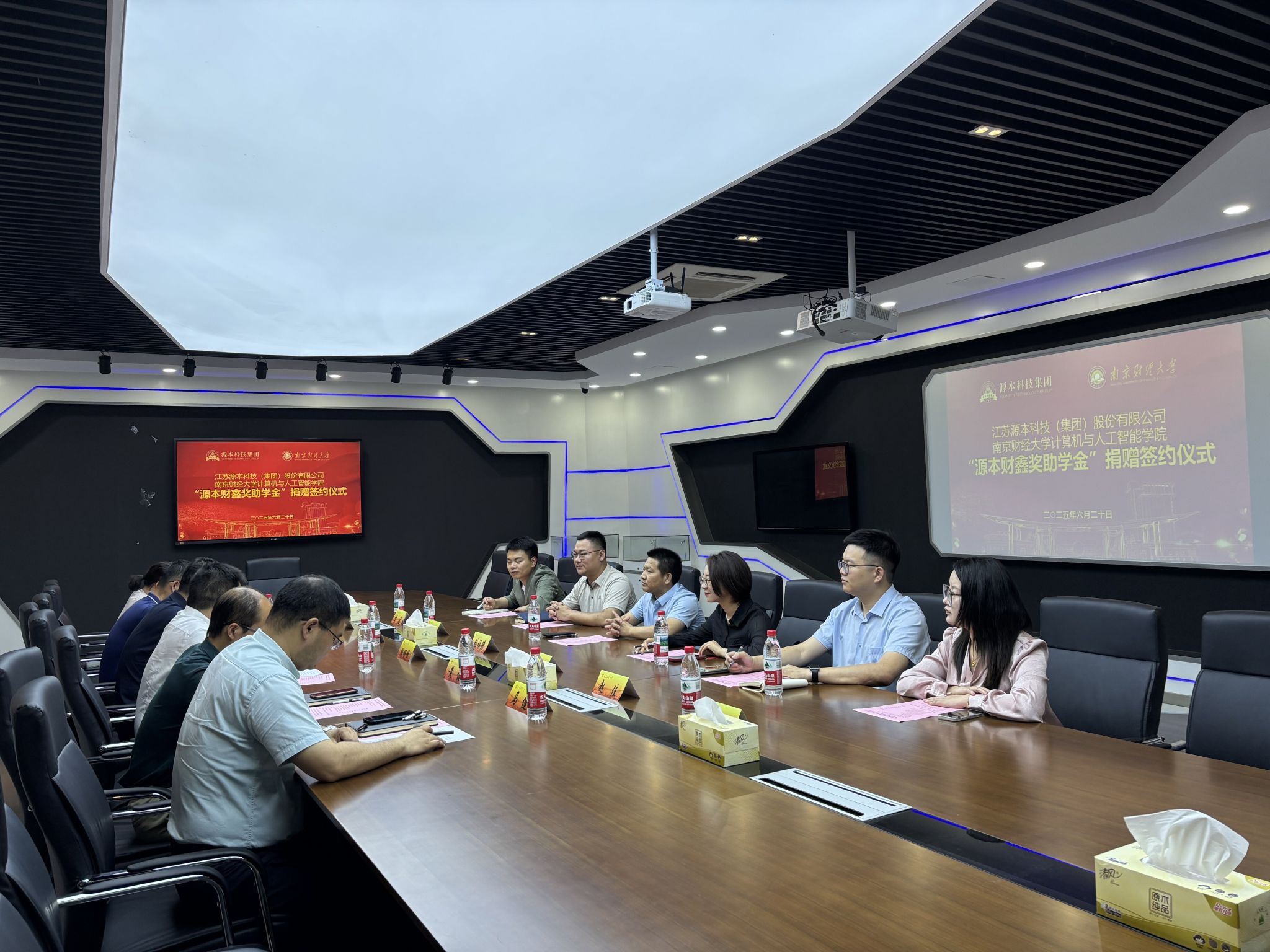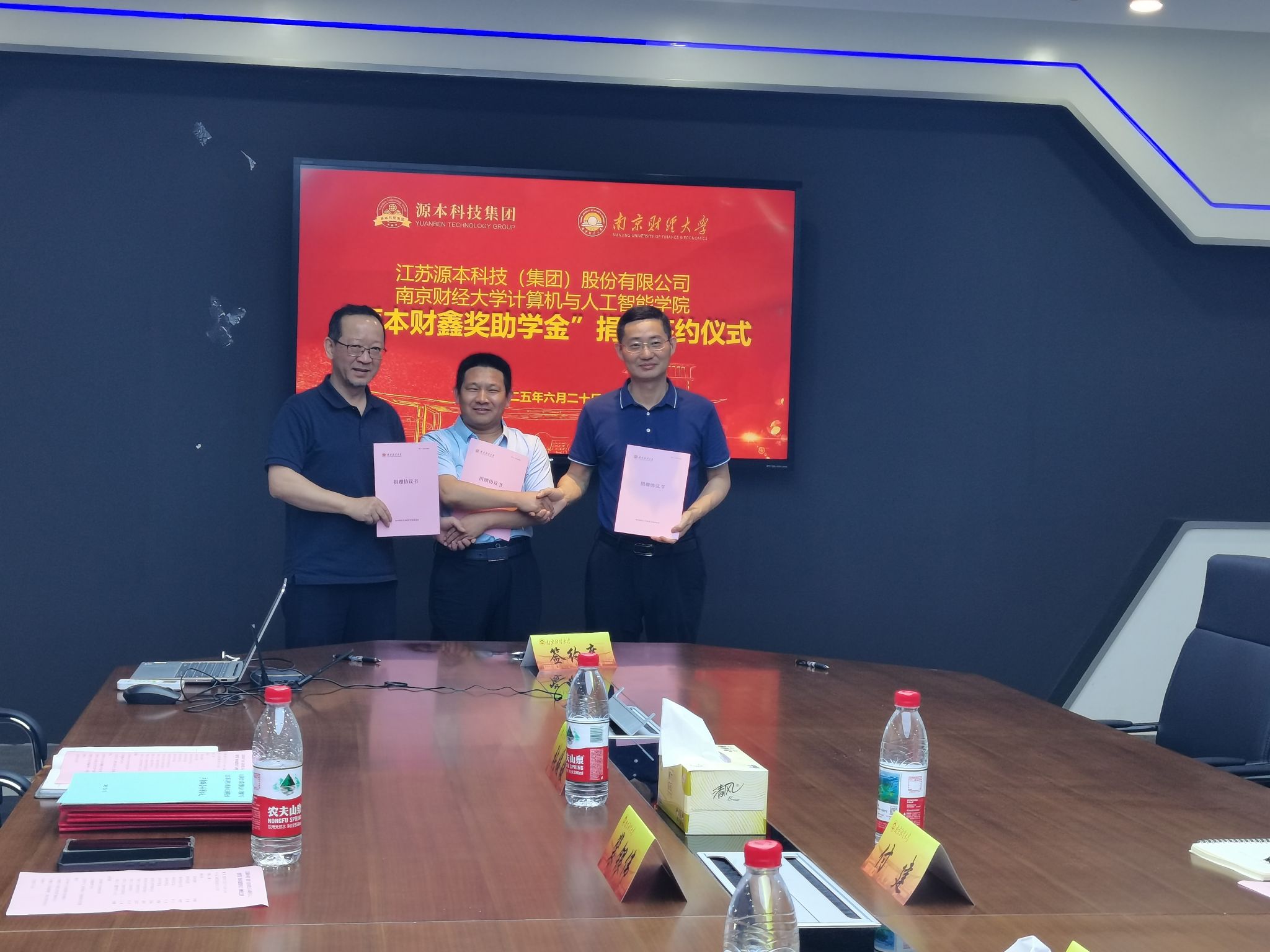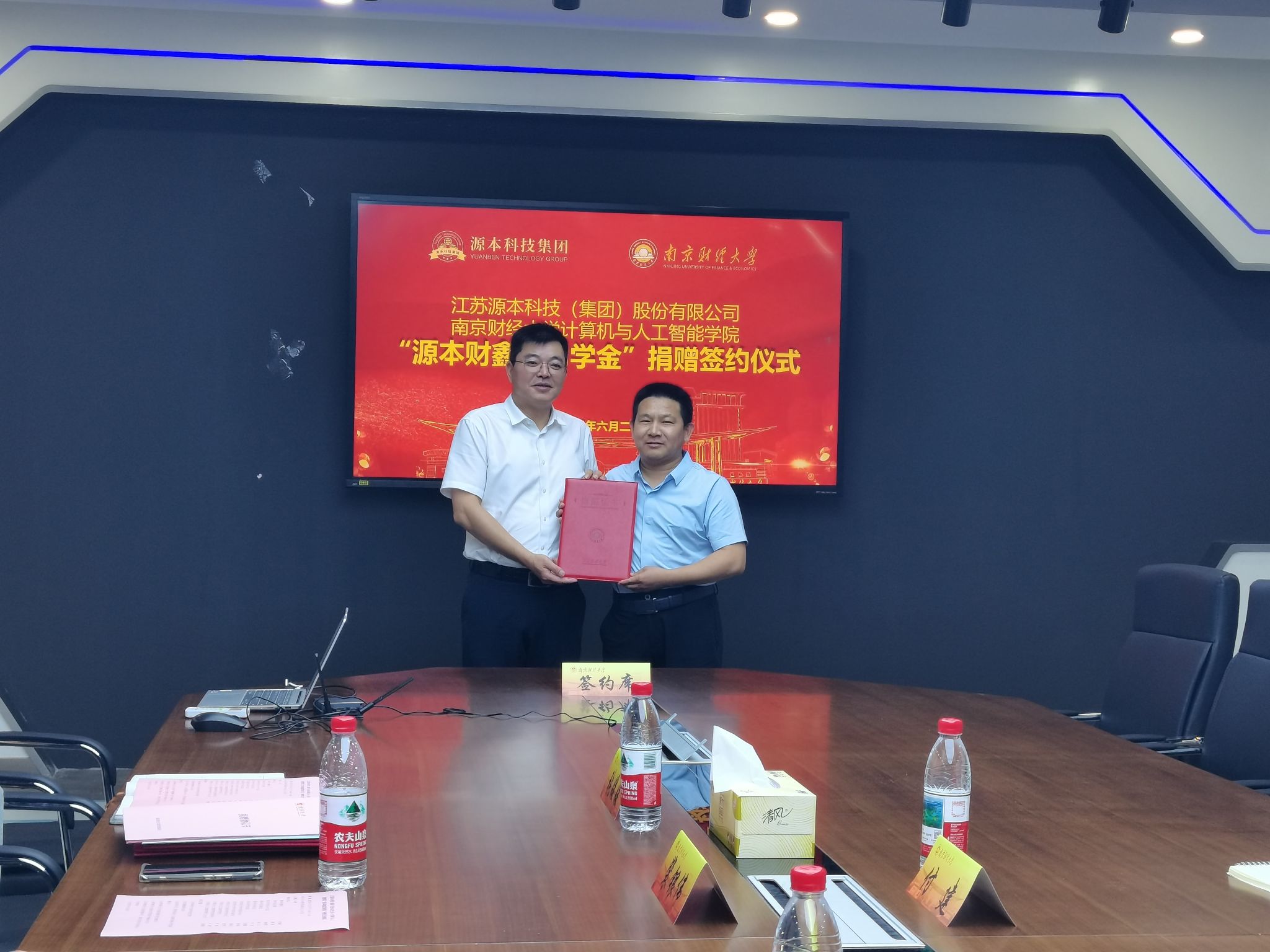 为深化校企合作,助力学生发展,6月20日下午,计算机与人工智能学院在仙林校区德业楼211会议室举行“源本财鑫奖助学金”捐赠签约仪式。江苏源本科技(集团)股份有限公司董事长张福德、总经理唐佩、校企合作总监徐敏博、区域总监赵佳、咨询总监付建、市场总监张慧娟,bat365对外联络处处长陆明峰、副处长裴银伟,以及计算机与人工智能学院领导和师生代表参加捐赠签约仪式。仪式由学院党委副书记马健主持。